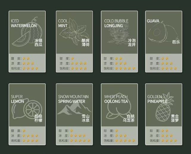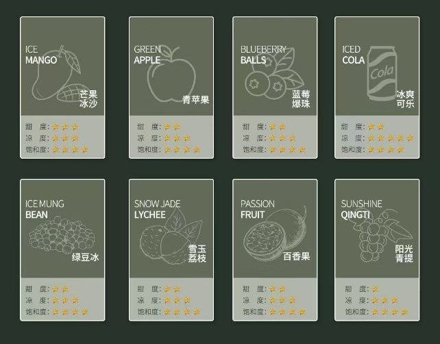- 风味选择:涵盖水果、饮品、茶风味,满足多样喜好
